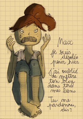 L'image qui suit est extraite du blog de Nemiri, que j'ai découvert aujourd'hui. Le blog, hein, parce que Nemiri, je l'ai "découvert" il y a quelques mois avec sa BD "Je suis Morte" parue chez Glénat. Bref, c'est un gros coup de coeur, et j'espère que vous aimerez aussi :) Cliquez sur l'image pour découvrir le blog en question ;)