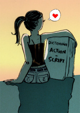 Je tiens à m'excuser pour la scandaleuse absence de mises à jour depuis samedi. Ça fait trois jours que je travaille sur un site internet, et comme j'avais été un peu ambitieuse dans mes propositions, il a fallu que je me casse la tête sur du code pendant tout ce temps, pour enfin réussir à le terminer. L'actionscript, c'est un langage très logique, et moi la logique ça me demande une concentration absolue. À peine ai-je pris le temps d'aller me vider la tête hier soir, et me griller quelques neurones au whisky-coca-light par la même occasion. J'ai rencontré deux personnes aussi gentilles qu'elles sont talentueuses, Singeon et Camilo avec un seul L, parmi d'autres gens du Club Yaourt, que je commence à voir un peu trop souvent selon mon foie. Bref bref bref, c'est quand même malheureux, maintenant je me mets la rate au court bouillon quand je blogue pas deux jours de suite...