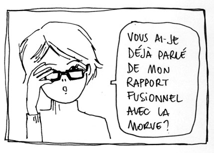 Et j'peux vous dire, à ceux qui sauront m'aider, y'a une putain de récompense à la clef, hein... parce que sur le Zip que m'a filé Grand'Pâ, y'a un dossier "Clotilde" avec plein de vieux dessins Ultrapaint que je faisais dans les nineties!! Donc si je réussis à savoir comment les ouvrir, je vais pouvoir faire de la mise à jour quotidienne avec des dessins vintages :) Y'en a d'ailleurs un que j'ai déjà récupéré, vu que je l'avais colorisé sous Photoshop (la version un, sans doute)... mais j'attends de voir s'il y a des bonnes volontés avant de me ridiculiser en le soumettant à votre critique acerbe ^^