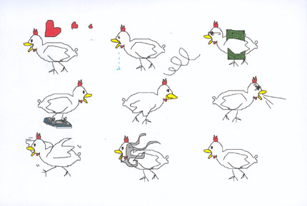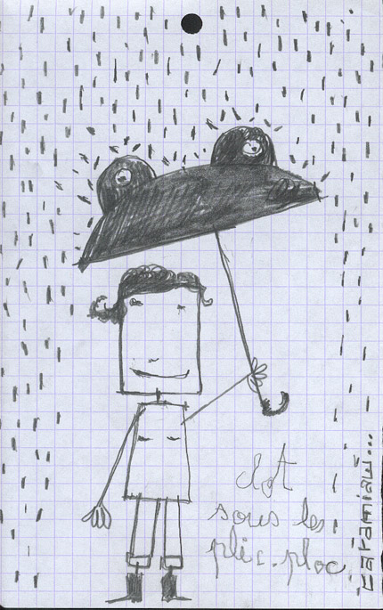 ... et en bonus, parce que le bermuda (!) noir qu'elle m'a offert disparaît dans la photo, la carte que Sophie avait faite pour l'accompagner... et qui m'a beaucoup touchée! NDLR : Sophie est ma "poule", et réciproquement.