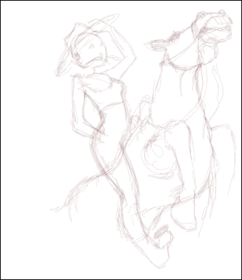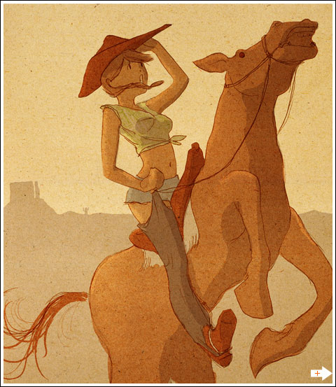 Puisque les cow-boys de vendredi n'ont apparemment pas remporté un franc succès, et connaissant tes goûts à toi, lecteur, j'ai donc décidé de dessiner une cow-girls, dans la plus pure tradition des Hot Girls que j'ai un peu délaissées ces derniers mois...