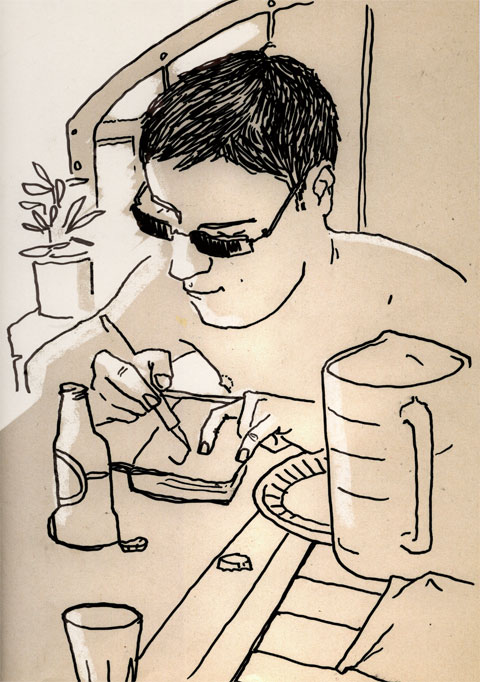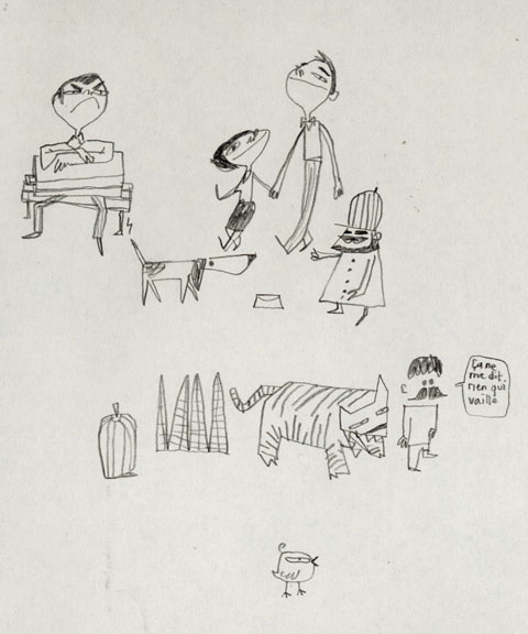 Bon là vous avez un aperçu de ce qui me gave le plus chez Julien : sa faculté à accumuler les petits croquis géniaux sur une même page sans qu'à aucun moment ça fasse brouillon. Je le hais (d'amour tendre).