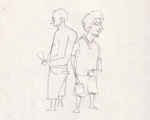 Voilà, d'ici mon retour, j'espère que vous aurez deviné où on va. Allez, c'est facile, y'a plein d'indices dans le dessin. Si vraiment vous voyez pas (c'est que vous avez pas les yeux en face des trous, mais bon), un gros-plan ici devrait vous mettre sur la voie.